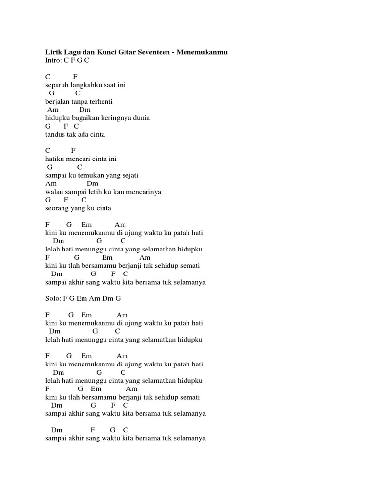 Lirik Lagu Dan Kunci Gitar Seventeen Pdf